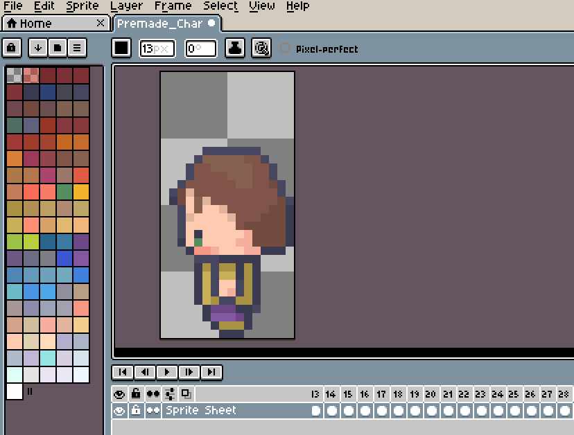 Now that the ideas were flowing, I needed to get some pixel art for the game. Luckily, there was a pack by LimeZu that was relatively cheap on Itch. The pack allowed me to import different sprite sheets into Affinity Photo and mix and match them to painstakingly create